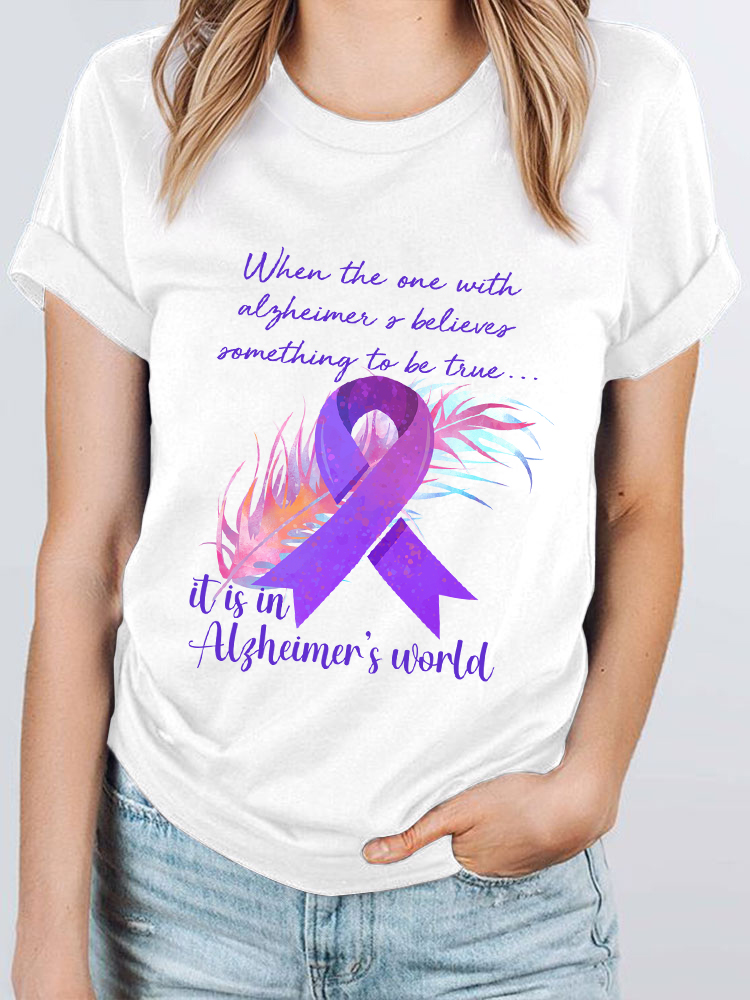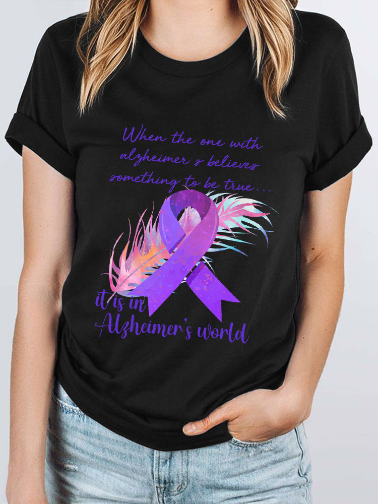 Women'S When The One With Alzheimer'S Believer Something To Be Time... It Is In Alzheimer'S World Round-Neck Short-Sleeved T-Shirt