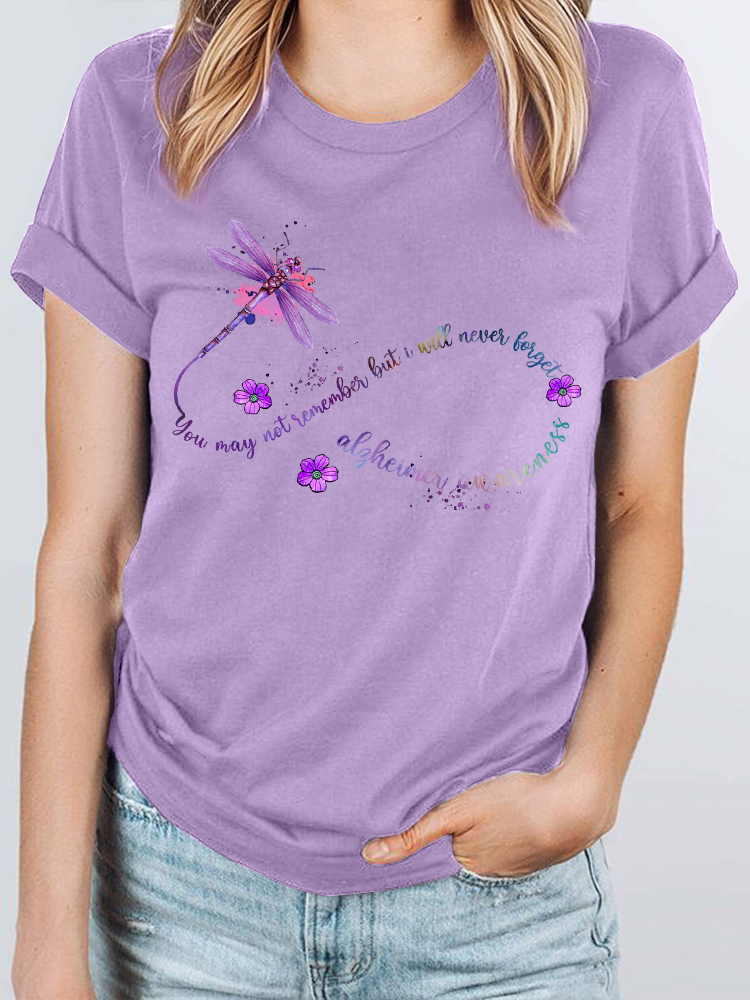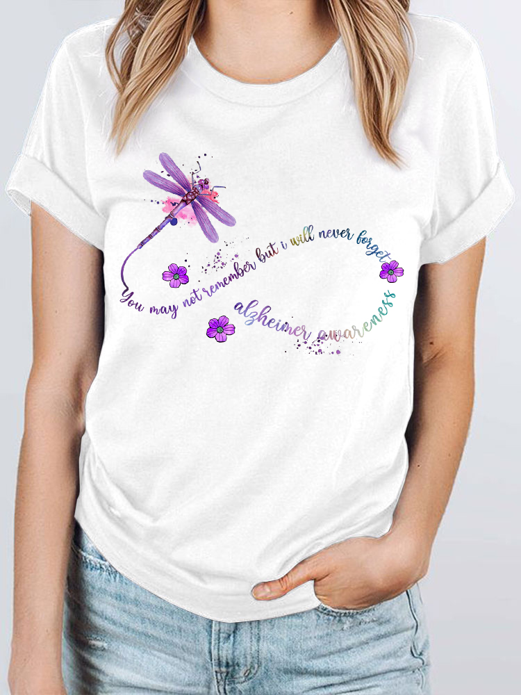 Women'S You May Not Remember But I Will Never Forget Alzheimer'S Awareness Round-Neck Short-Sleeved T-Shirt