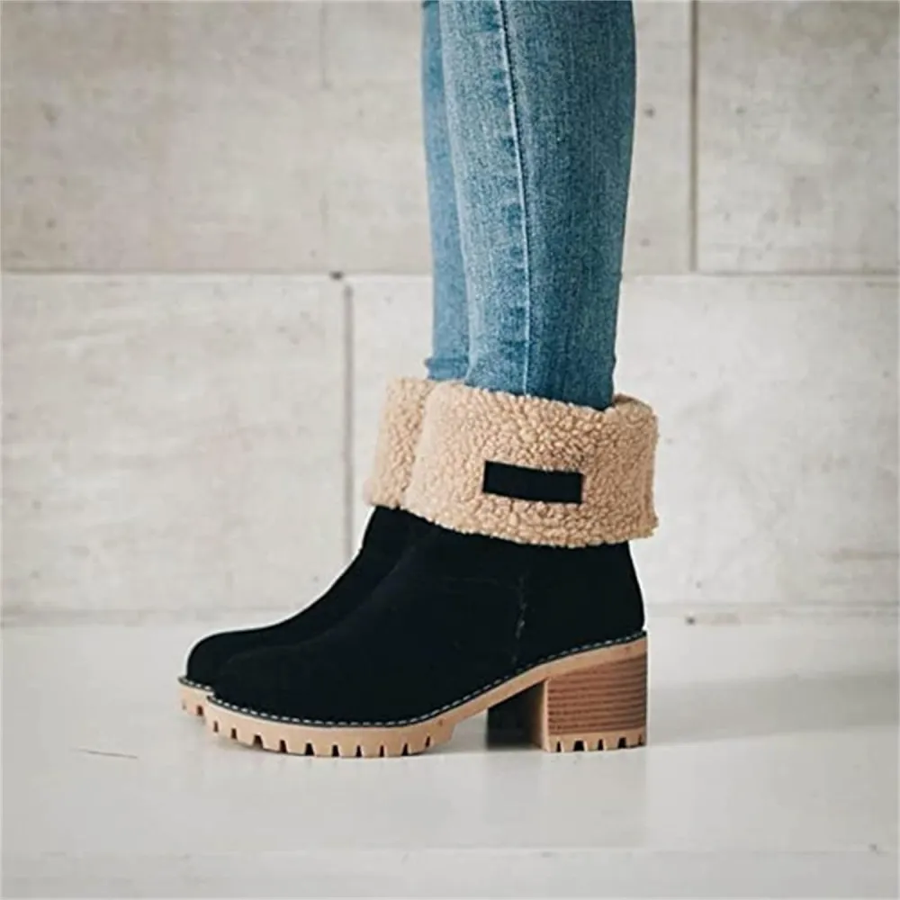 Women Snow Boots Winter Faux Fur Warm, Outdoor Hiking Booties Casual Fashion Soft Waterproof Windproof insulated Mid Calf Boots, Comfortable Thick Plush Keep Warm Shoes (Black 1,7)