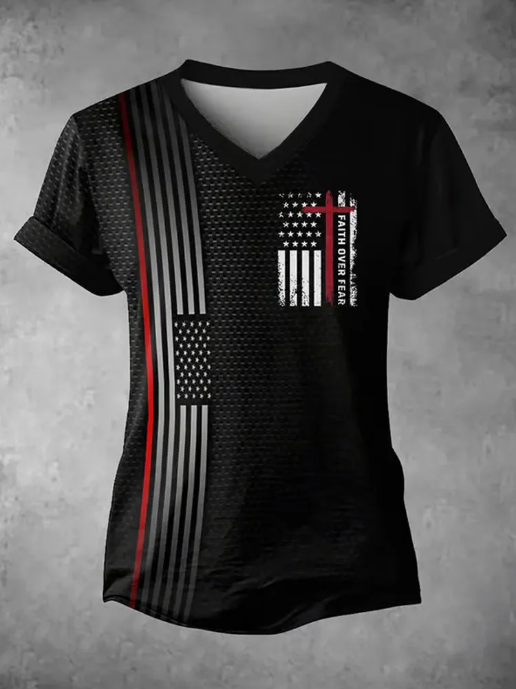 Women's American Flag Faith Over Fear Print Casual T-shirt