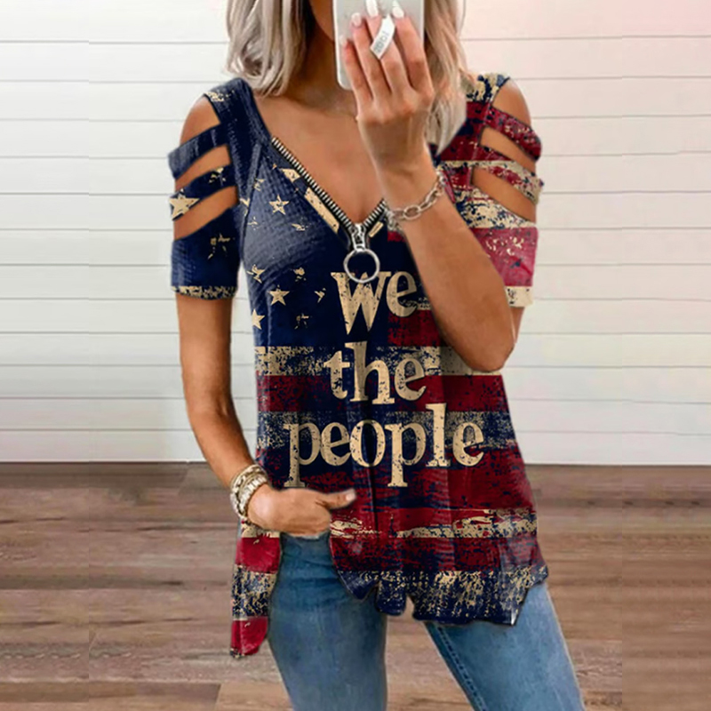 Women's American Independence Day We The People Printed Short-sleeved T-shirt