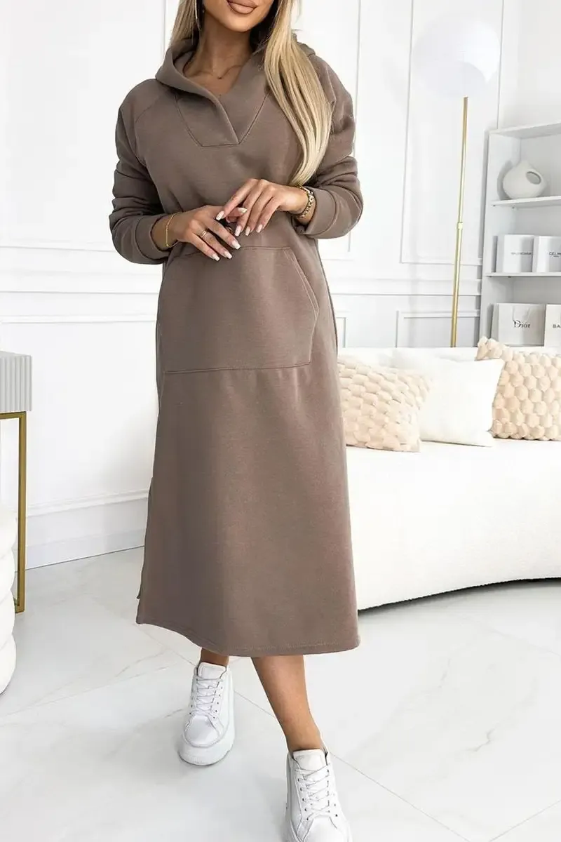 Women's Autumn and Winter Solid Color Casual All-match Long Dress with Hood
