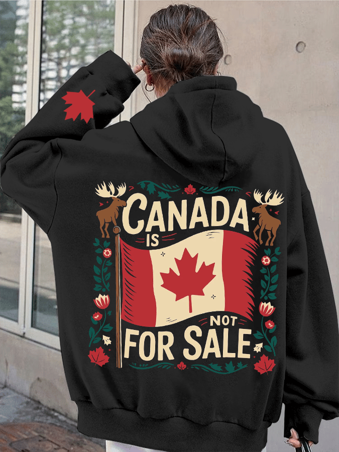 Women's Canada is Not for Sale Print Hooded Zip-Up Sweatshirt