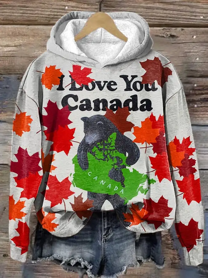 Women's Canada Maple Map And Beer Print Hoodie