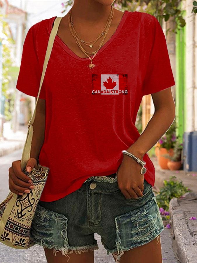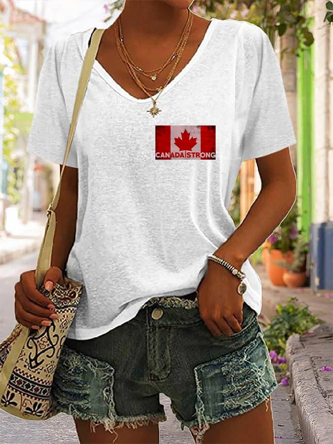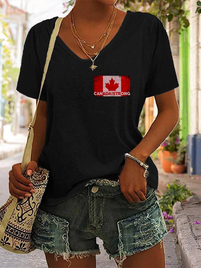 Women's Canada Strong Flag Print V-Neck T-Shirt