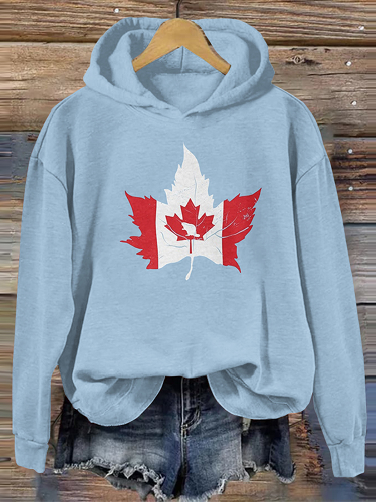 Women's Canadian Maple Leaf Flag Print Casual Hoodie