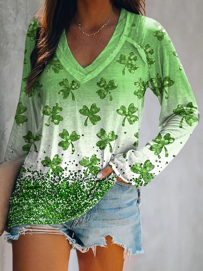 Women's Casual St Patrick'S Day Printed Long Sleeve T-Shirt