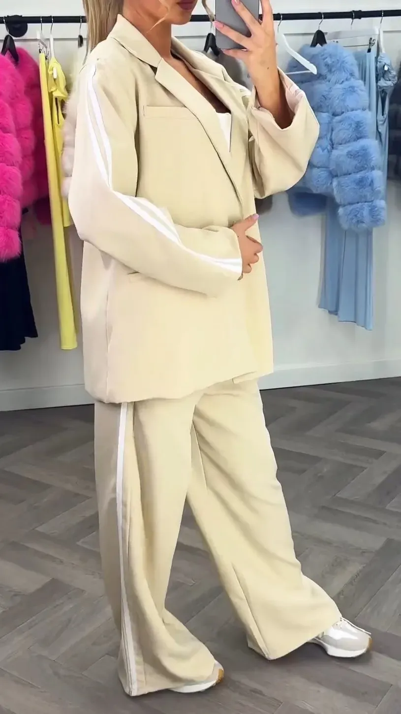 Women's Casual Striped Suit Pants Set