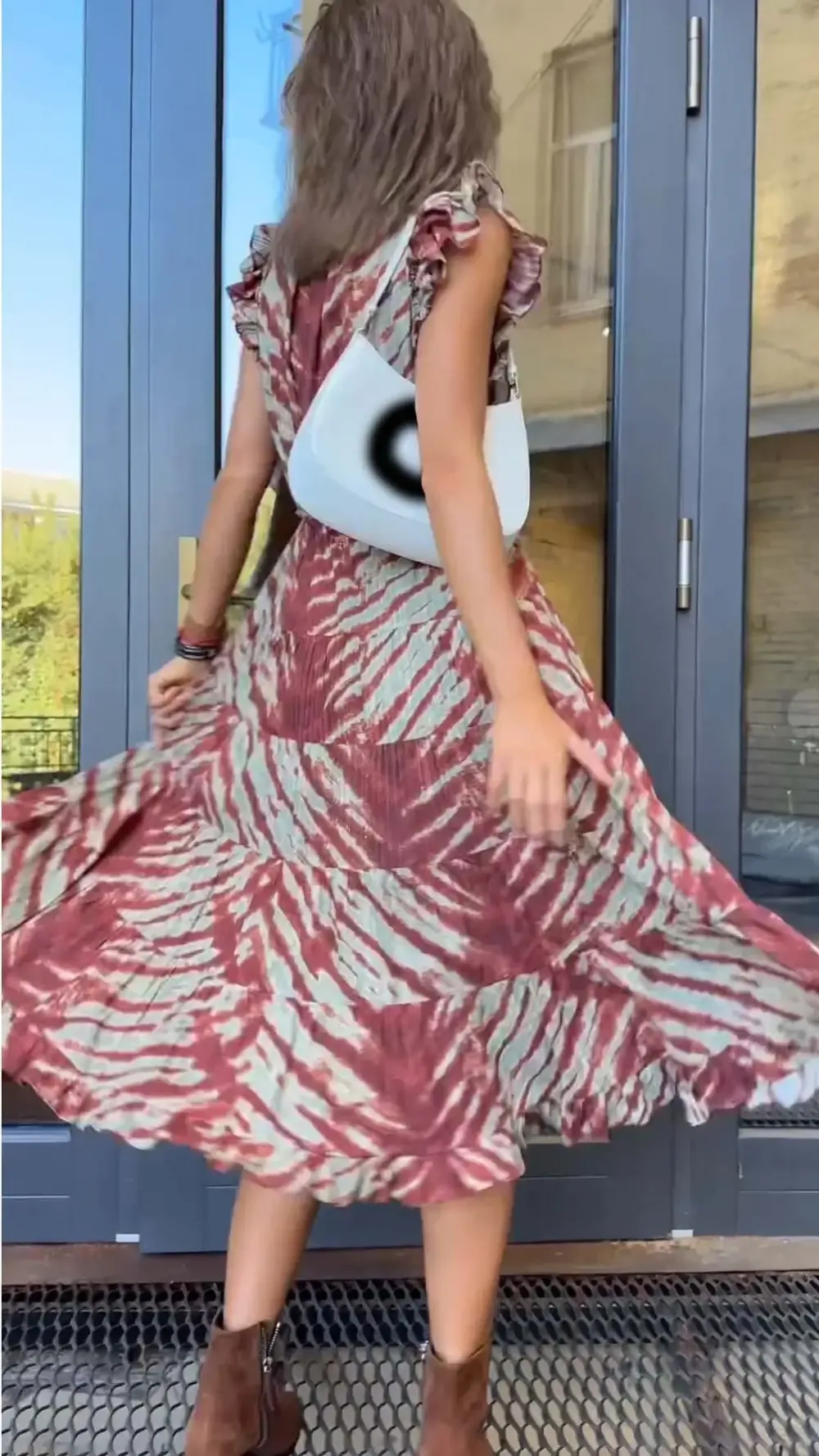 Women's Casual Tie-Dye Print Sleeveless Ruffle Dress