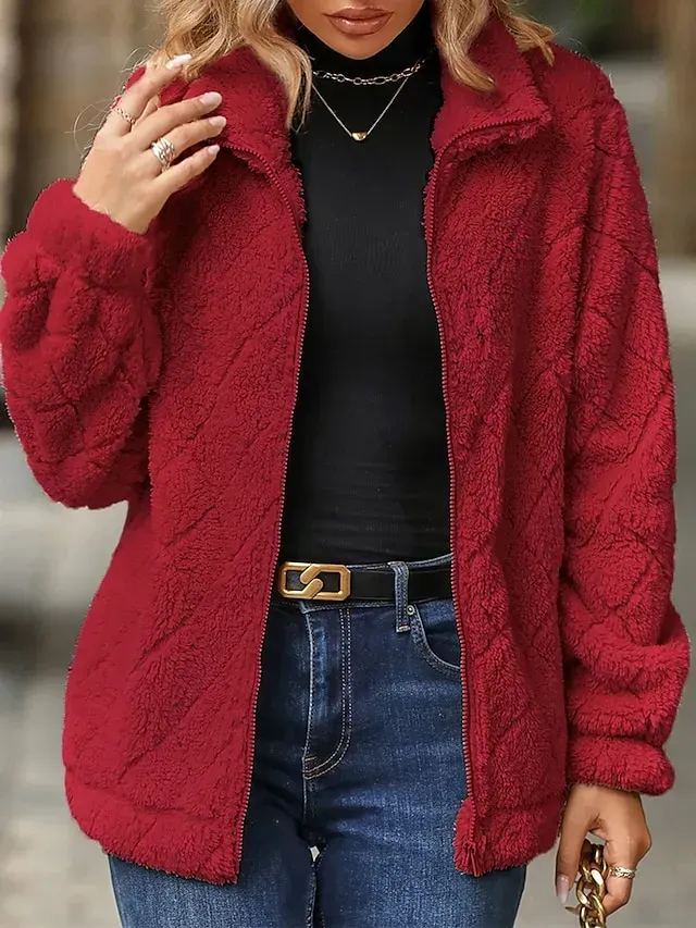 Women's Fleece Jacket Sherpa Jacket Teddy Coat Windproof Warm Outdoor Street Daily Wear Vacation Zipper Pocket Zipper Turndown Plush Modern Casual Street Style Plain Regular Fit Outerwear Long Sleeve