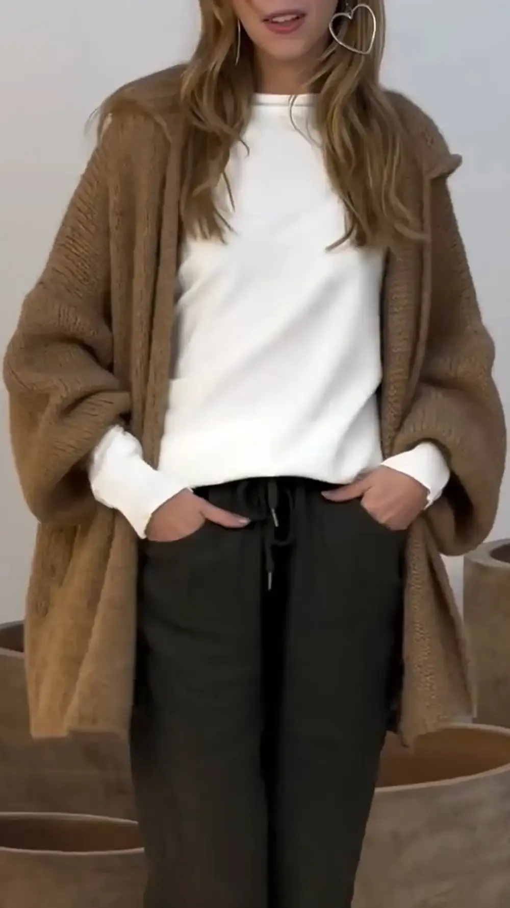 Women's Hooded Long-sleeved Knitted Casual Tops Jacket