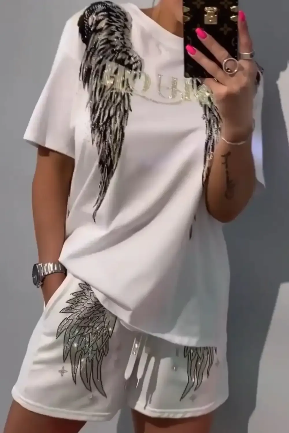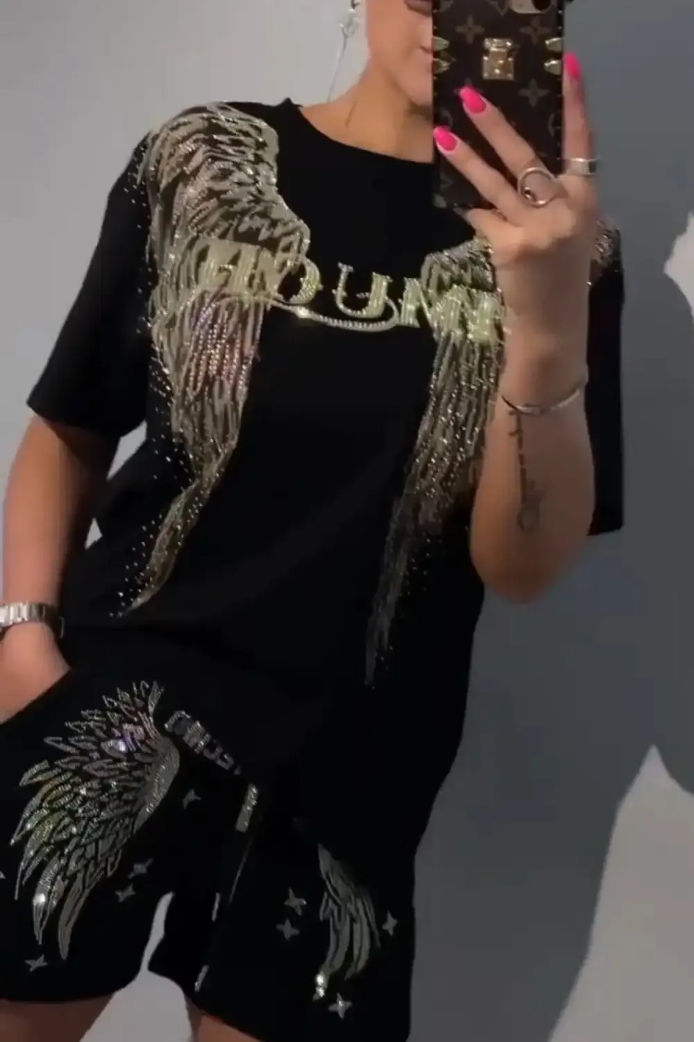 Women's Hot Diamond Pattern Top and Shorts Pants Two-piece Set