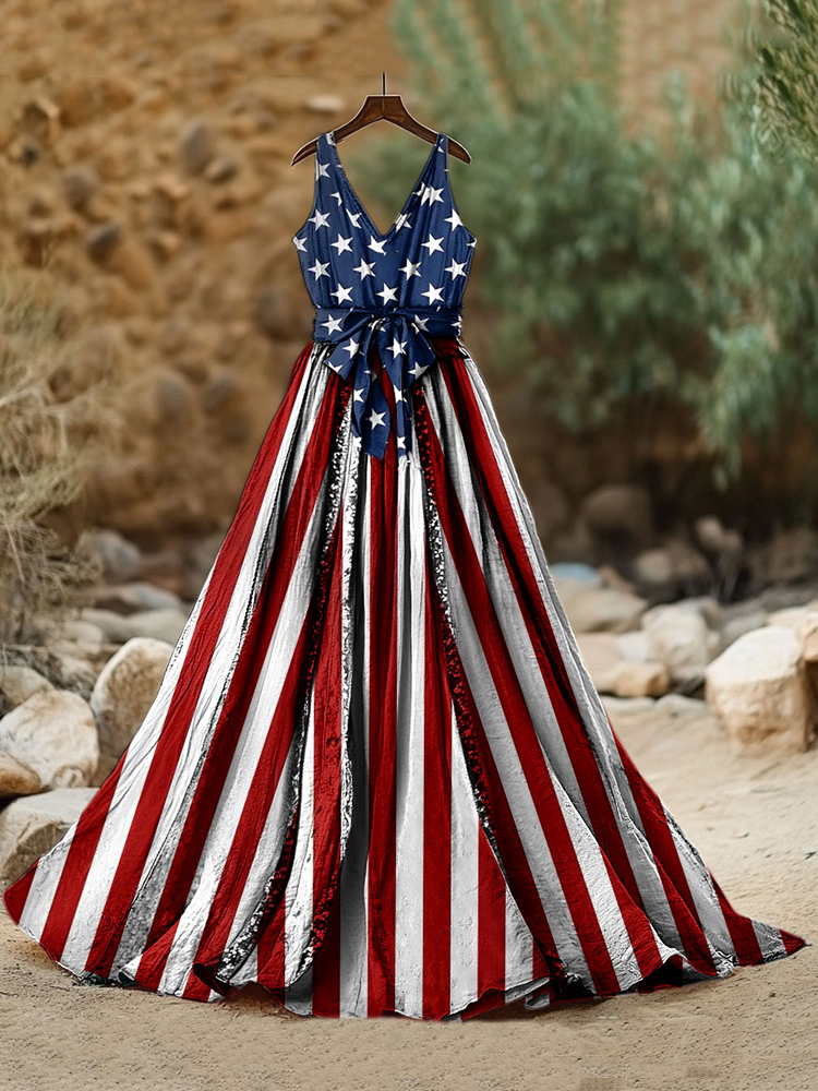 Women's Independence Day American Flag 4th Of July Art Sleeveless Dress