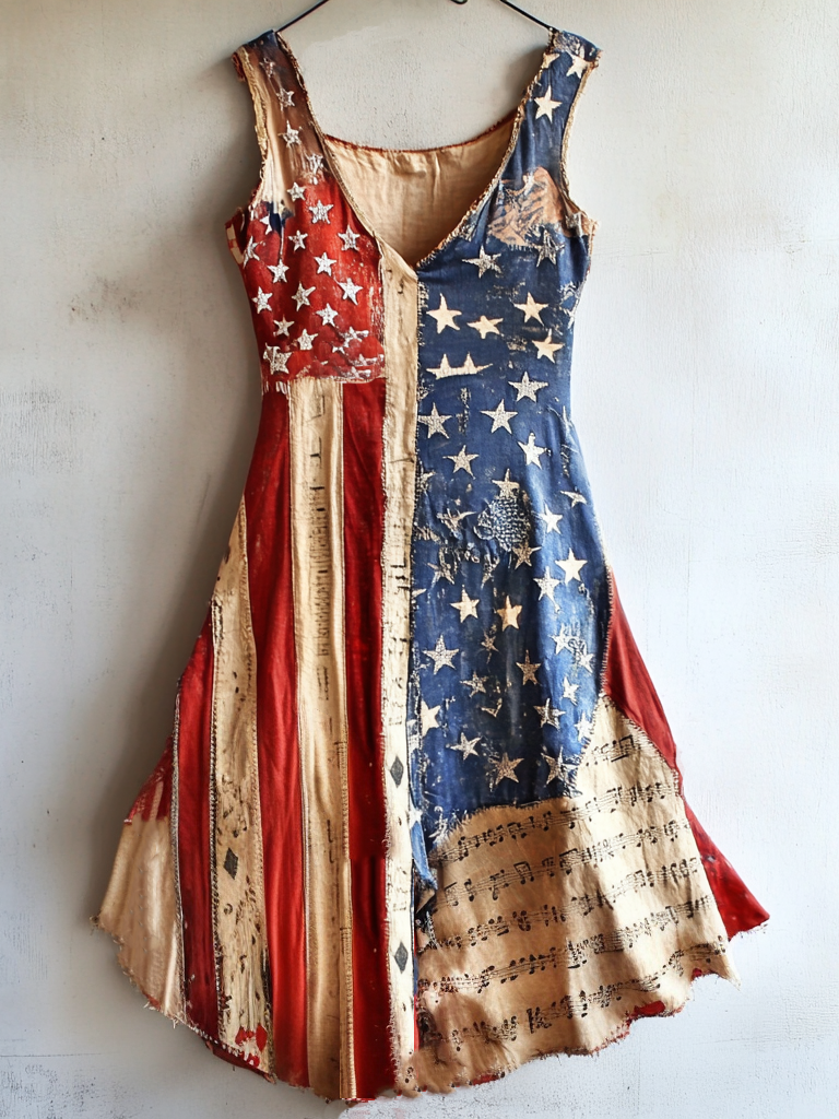 Women's Independence Day Flag And Musical Notes Short Sleeve Dress