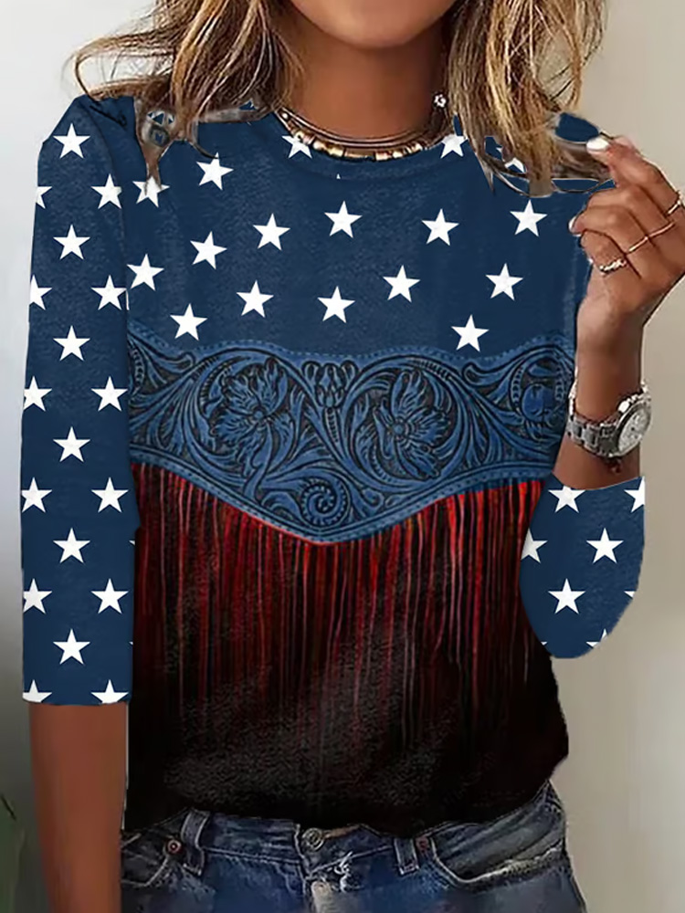 Women's Independence Day Flag Print Crew Neck T-shirt