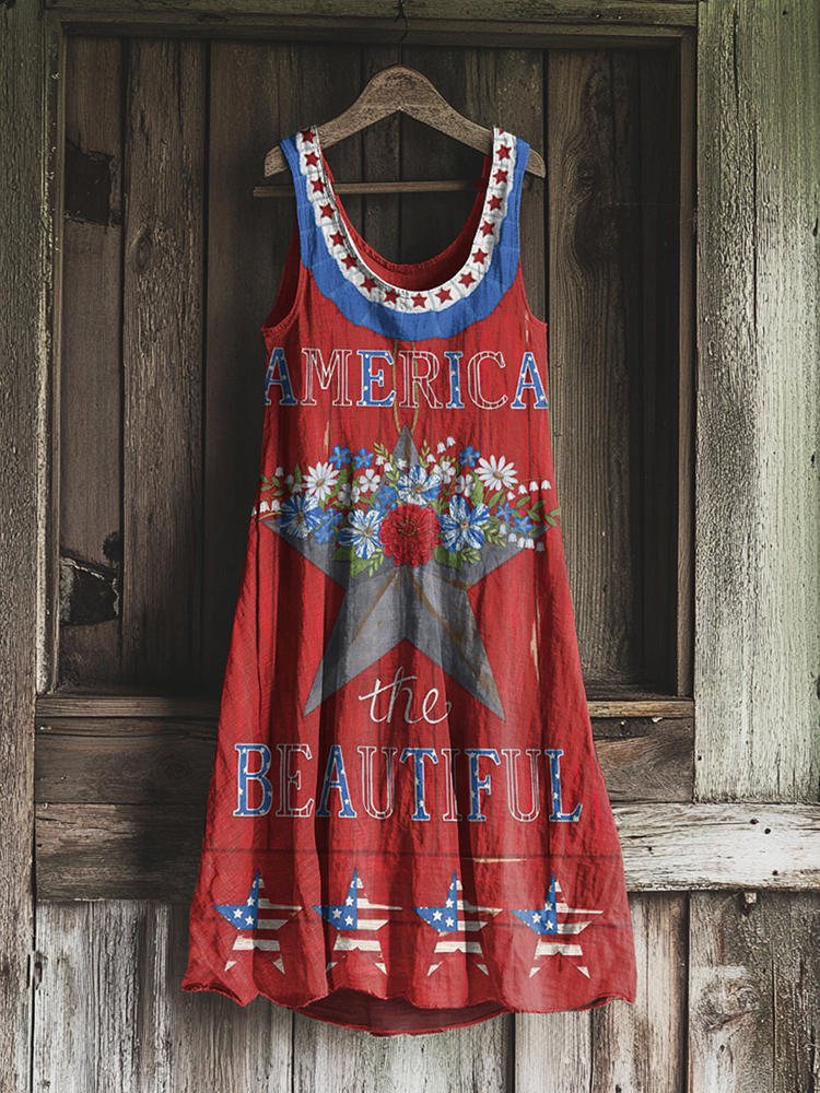 Women's Independence Day Floral Pattern Cotton And Linen Dress
