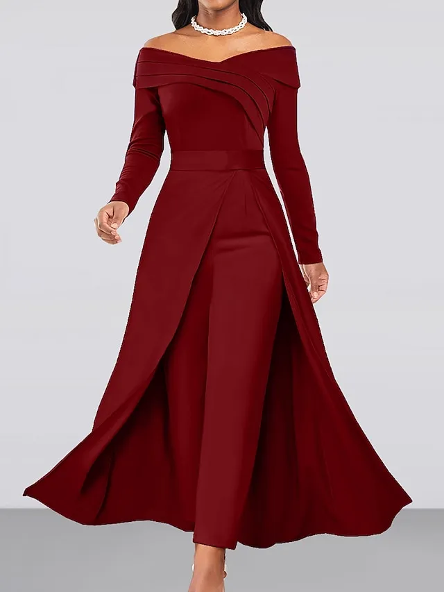 Women's Jumpsuit Solid Color Off Shoulder Elegant Wedding Party Wide Leg Regular Fit Long Sleeve Red Royal Blue S M L All Seasons