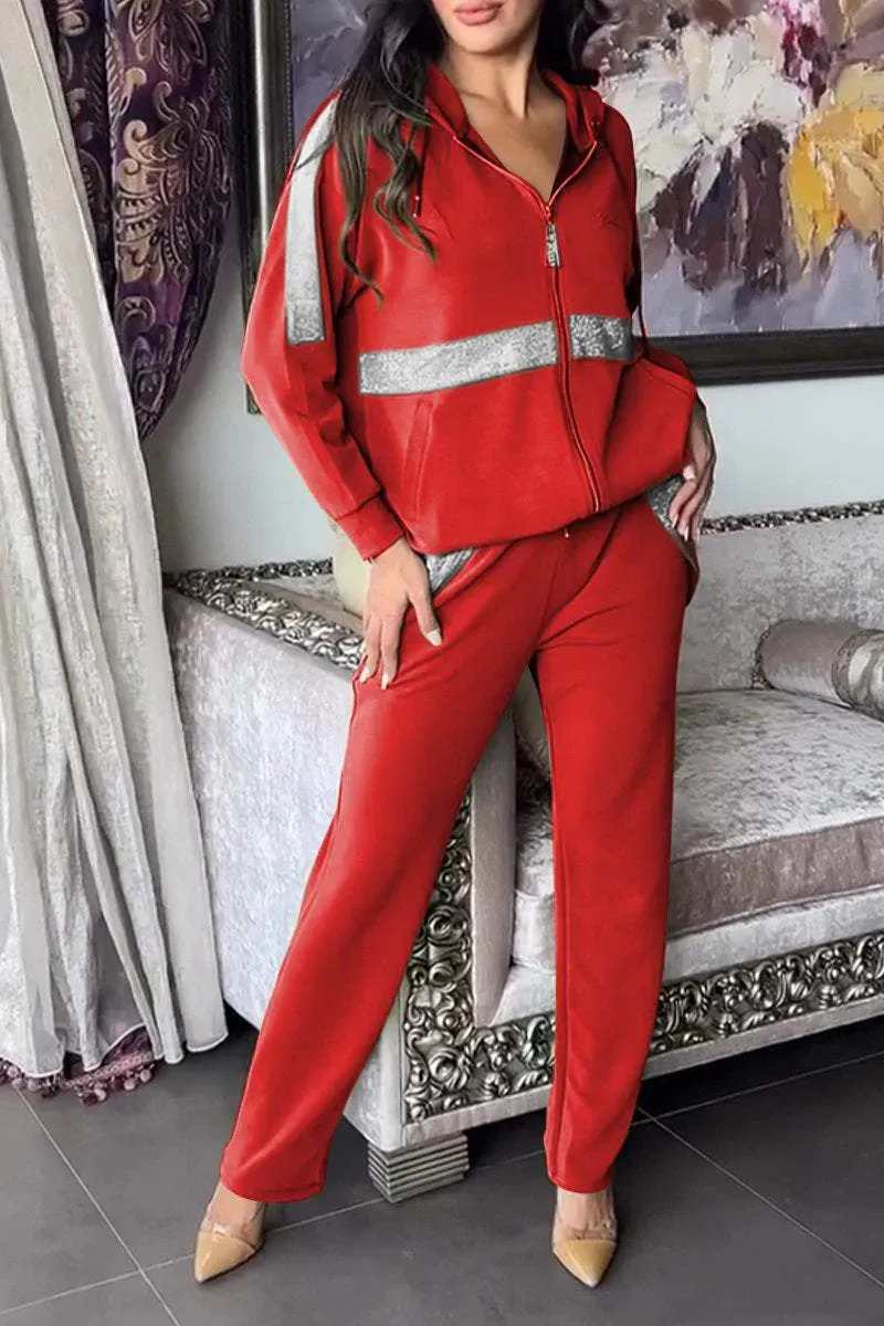 Women's Long-sleeved Hooded Zipper Top Two-piece Set