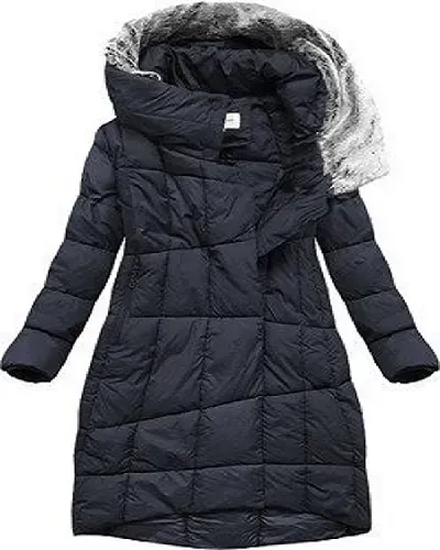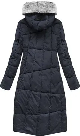 WOMEN'S LONG WINTER JACKET WITH A HOOD, NAVY