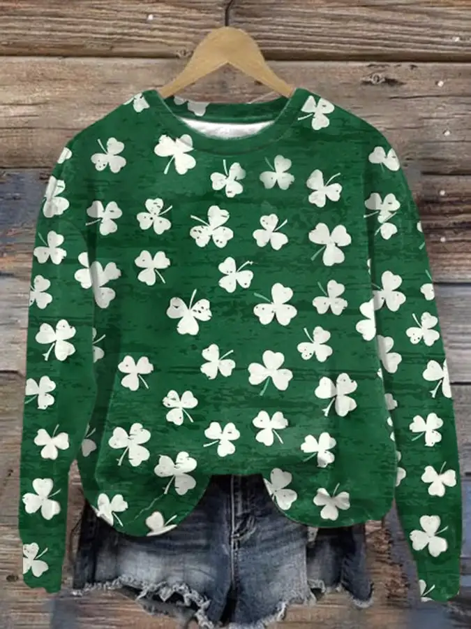 Women's Lucky Clover Print Crew Neck Sweatshirt