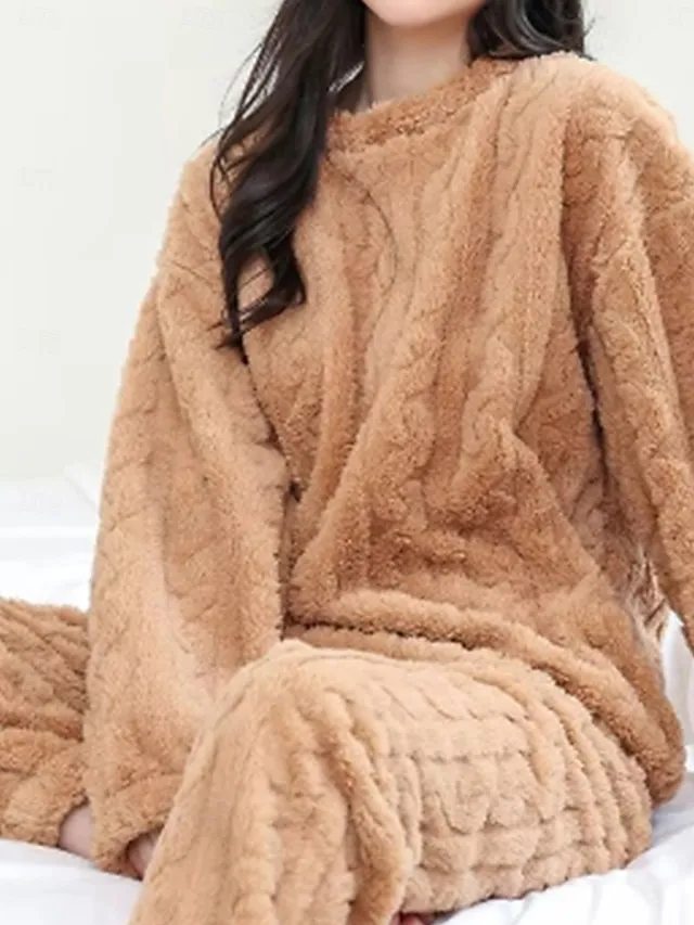 Women's Pajamas Loungewear Pajama Set Pure Color Warm Comfort Sweet Home Comfort Warm Crew Neck Long Sleeve Pullover Pant Winter Home Outfits