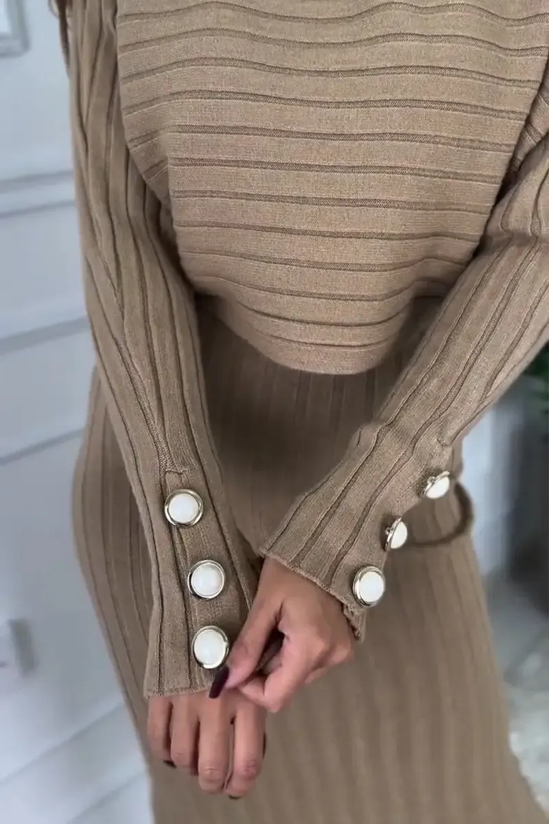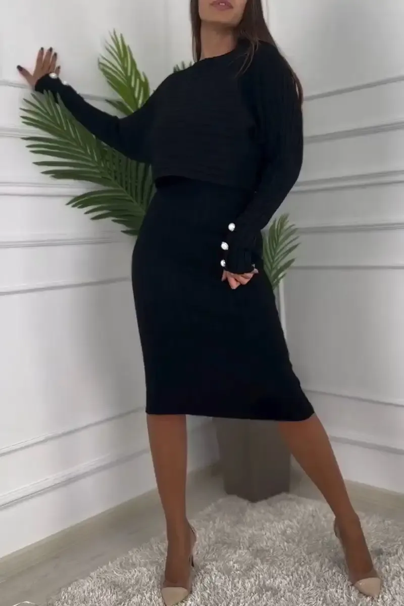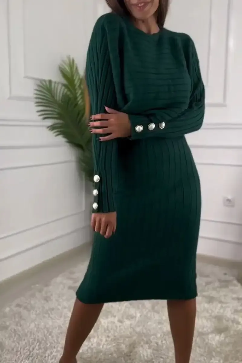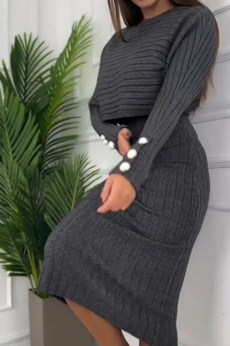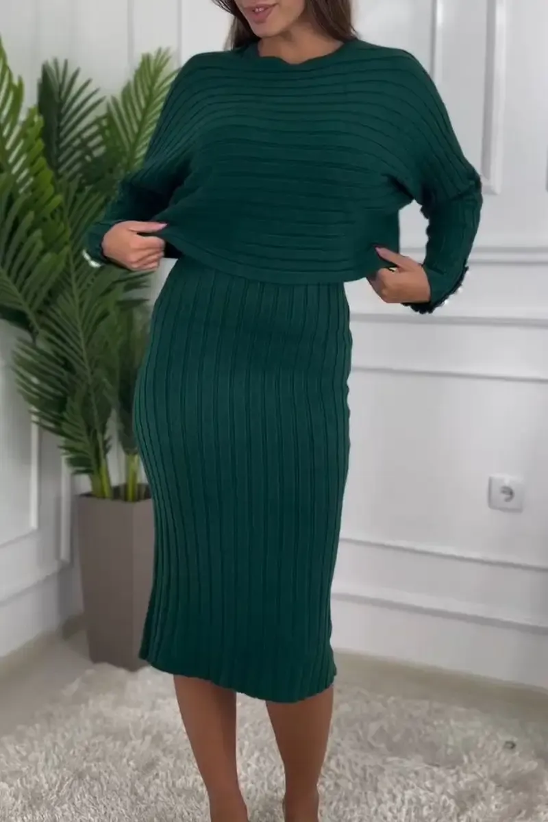 Women's Round Neck Long Sleeve Knitted Sweater Casual Suit Dress