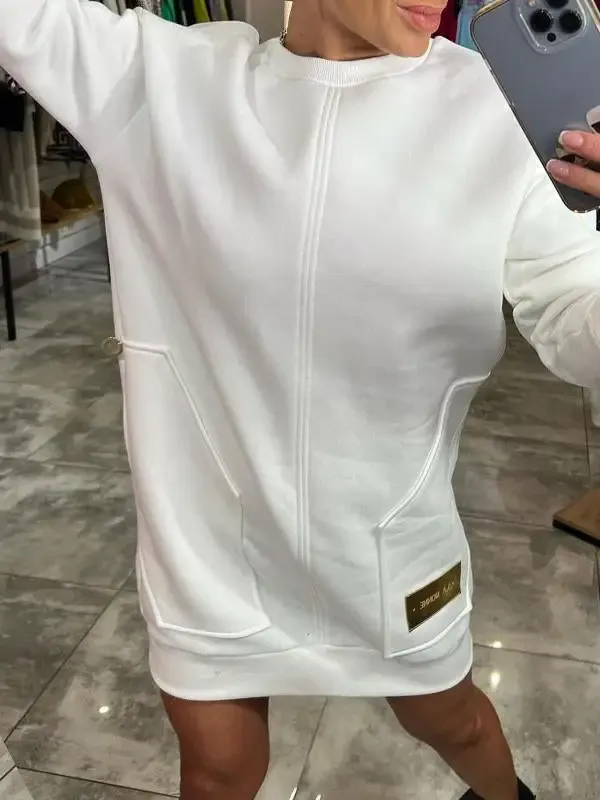 Women's Round Neck Long Sleeve Sweater Dress