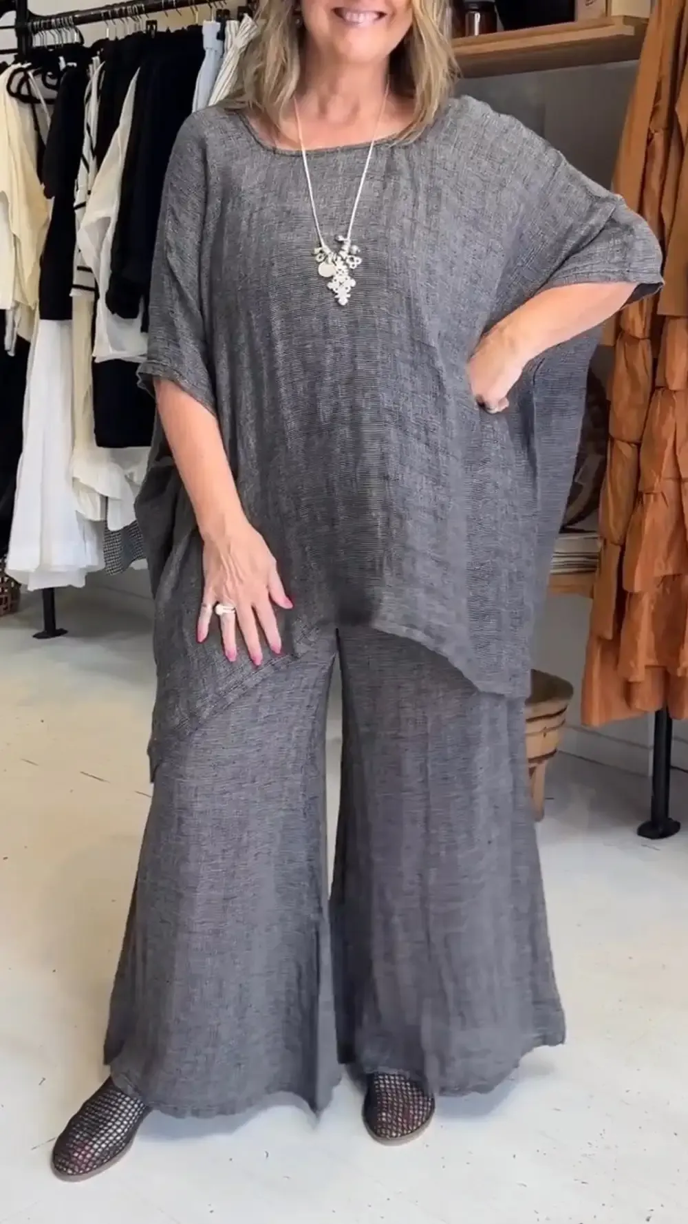 Women's Round Neck Mid-length Bat Sleeve Loose Casual Suit