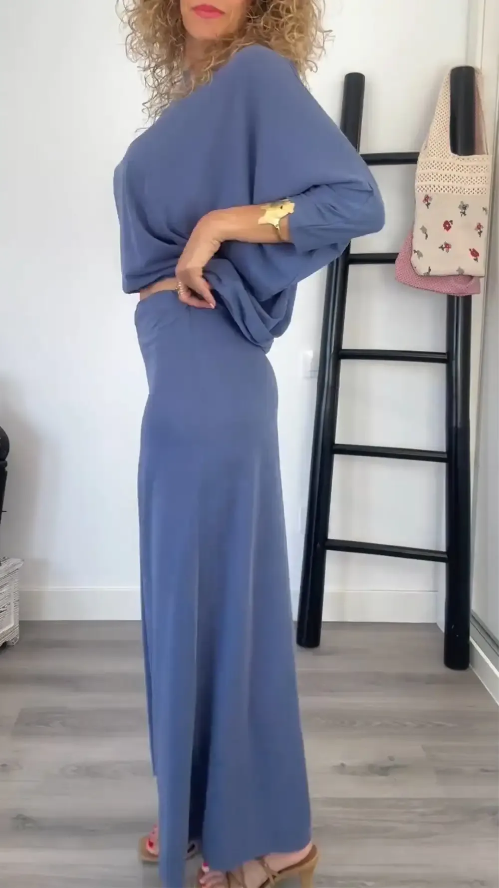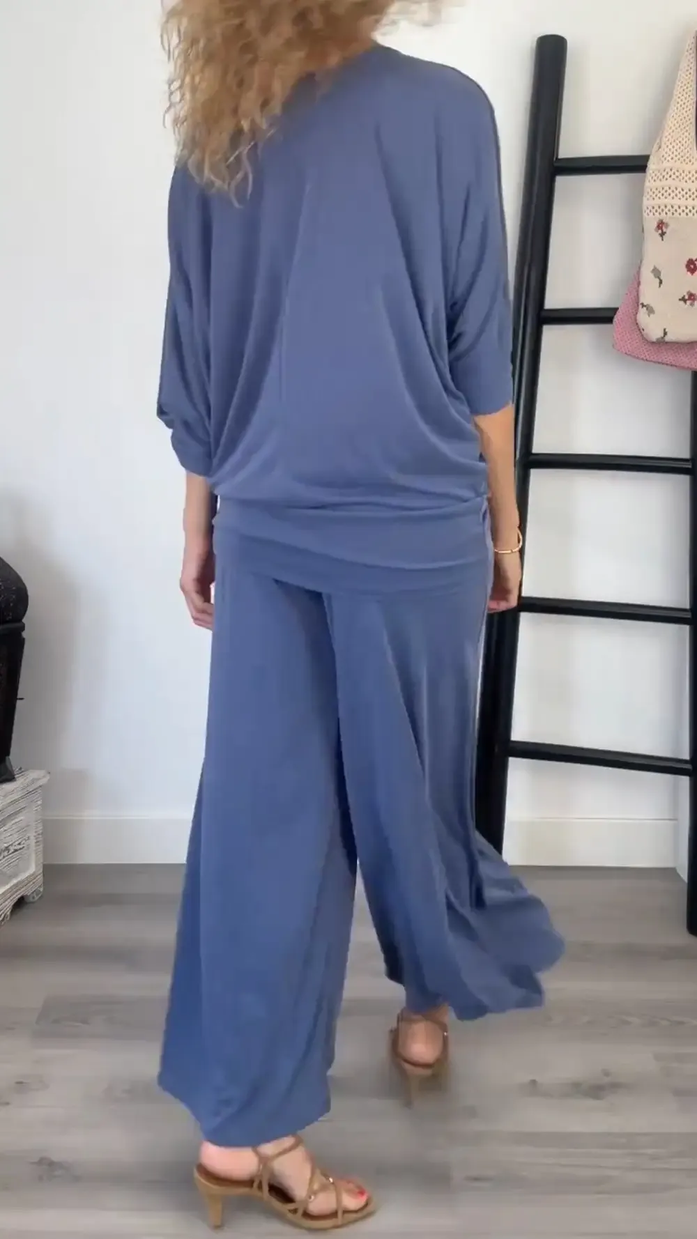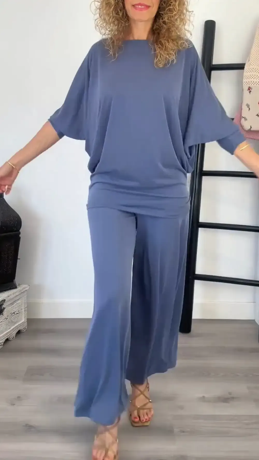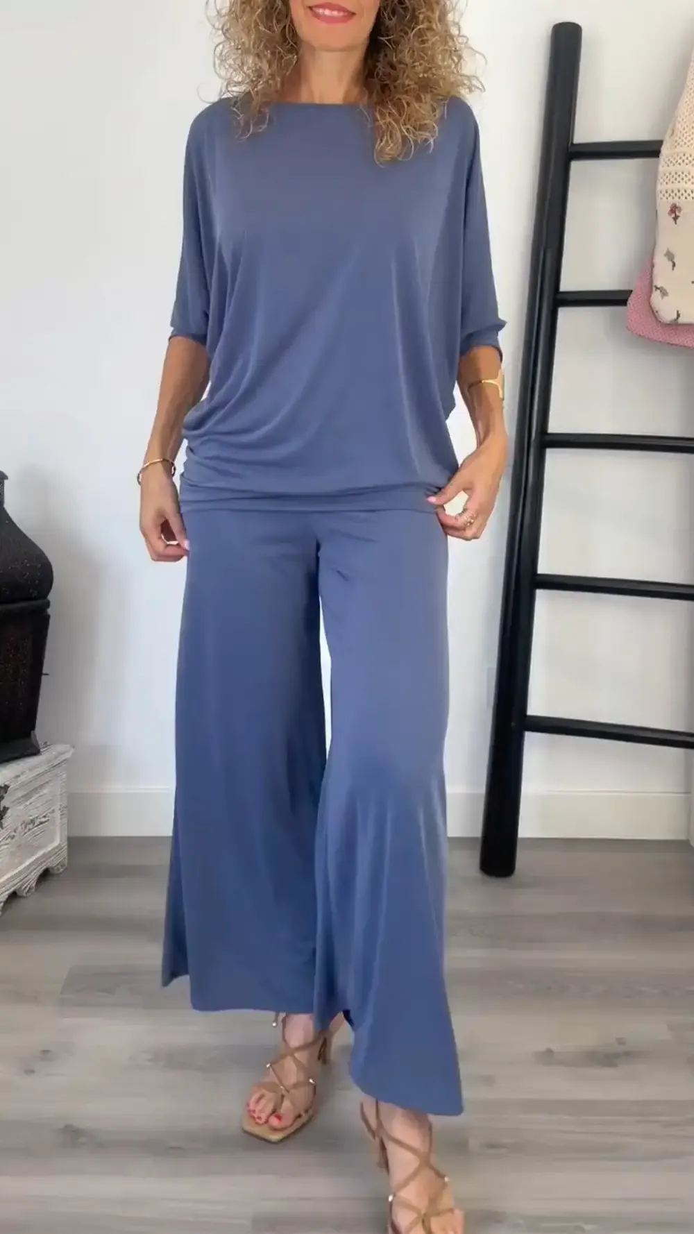 Women's Round Neck Mid-length Sleeve Comfortable Casual Two-piece Suit