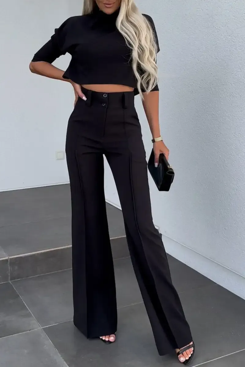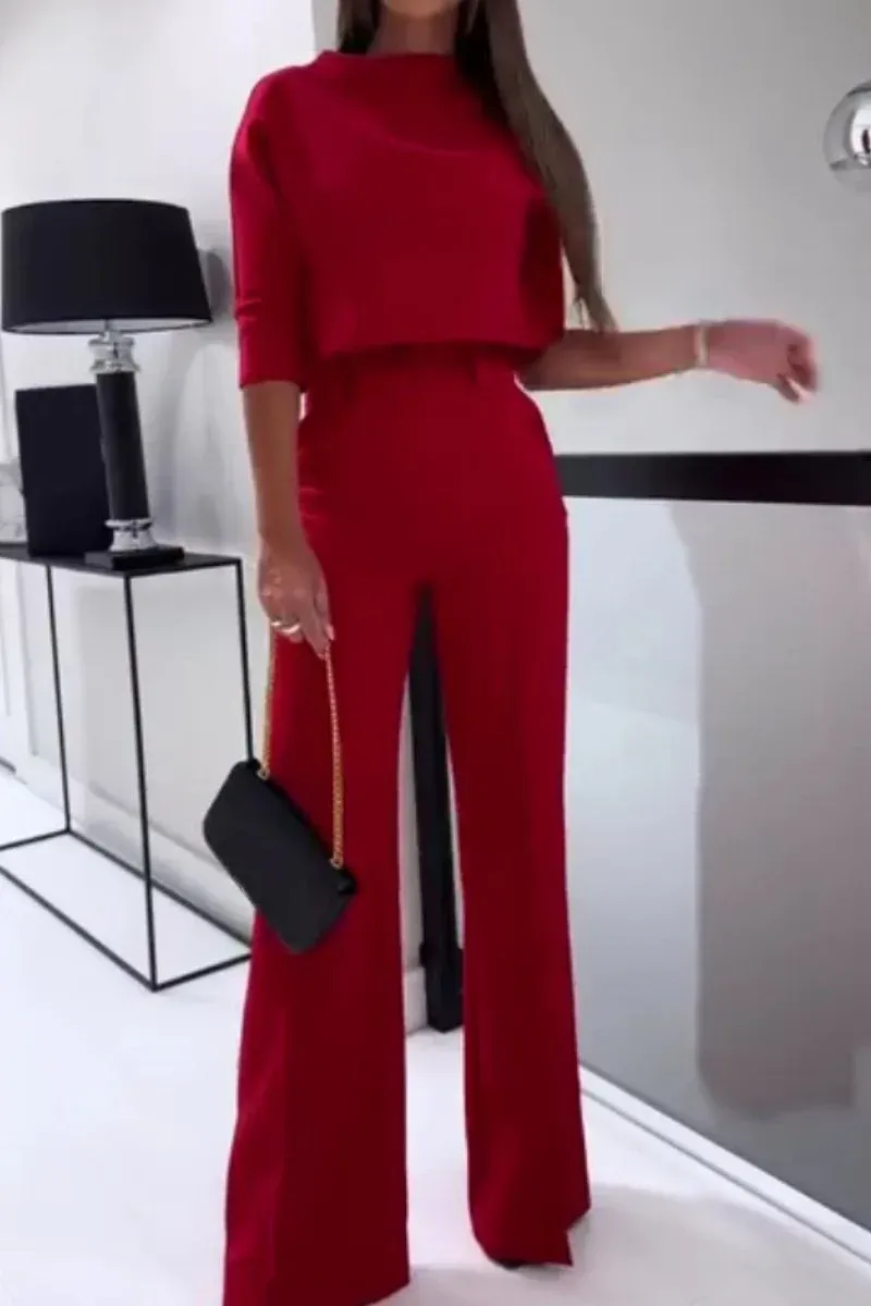 Women's Round Neck Mid-length Sleeve Solid Color Casual Suit