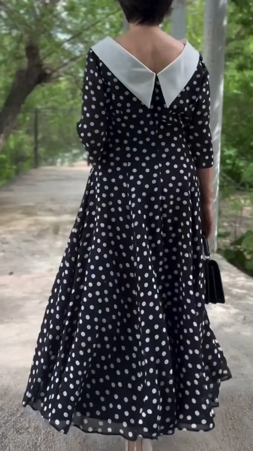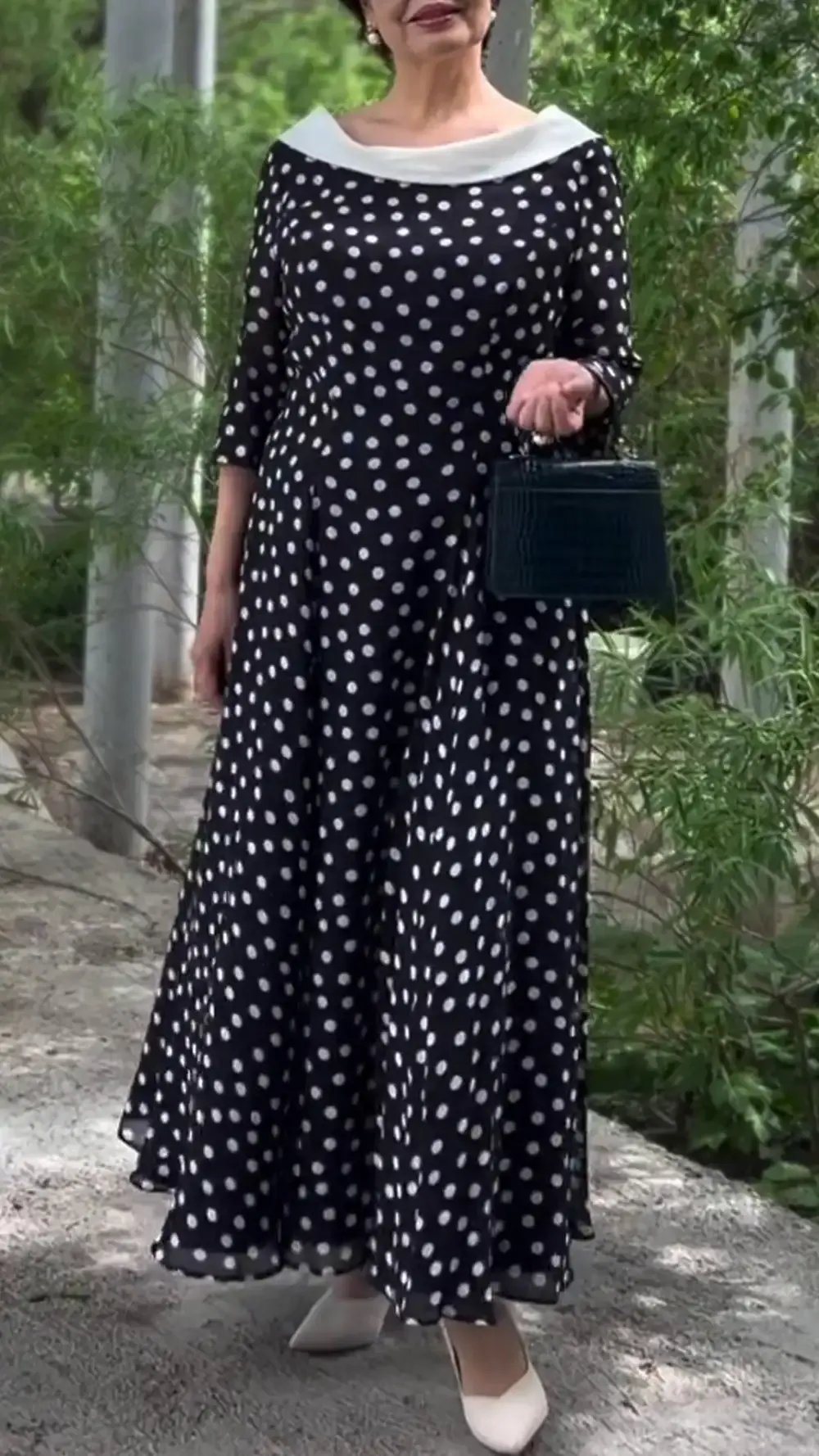 Women's Round Neck Polka Dot Mid-length Sleeve Elegant Dress