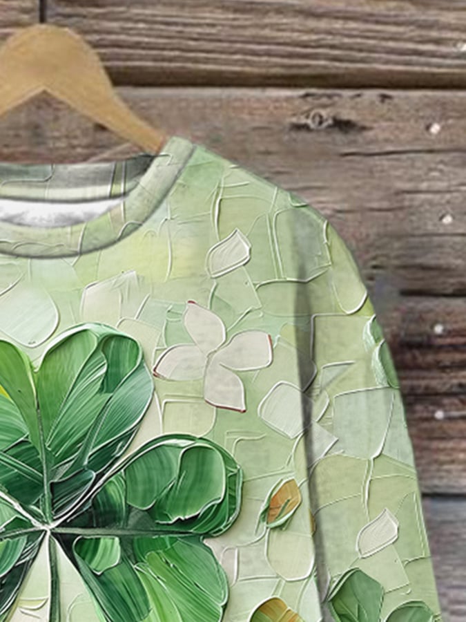 Women's Shamrock St Patrick's Day Printed Round Neck Sweatshirt