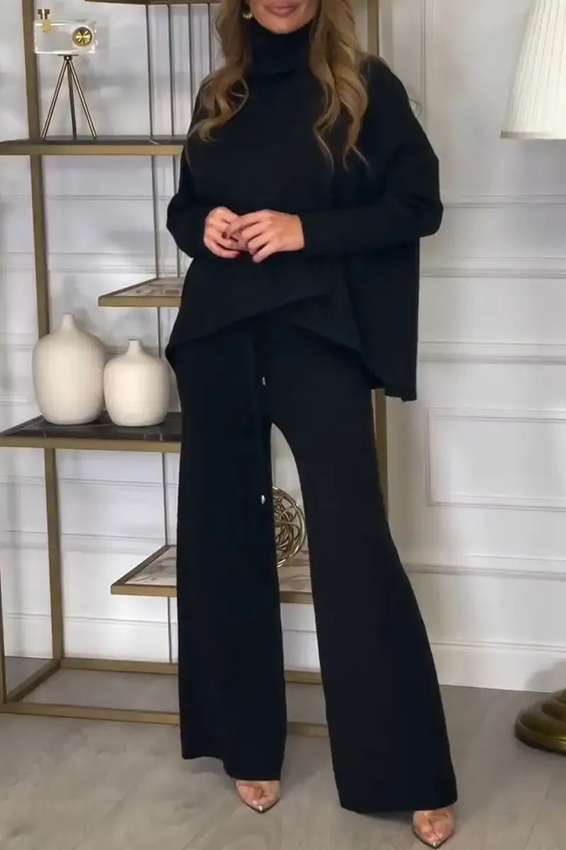 Women's Solid Color Turtleneck Sweater and Trousers Two-piece Set