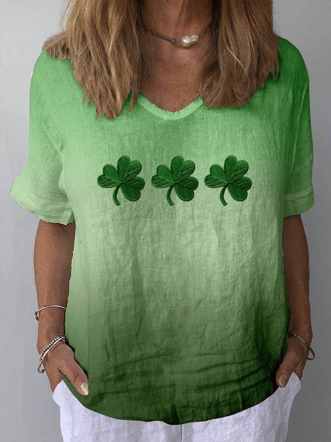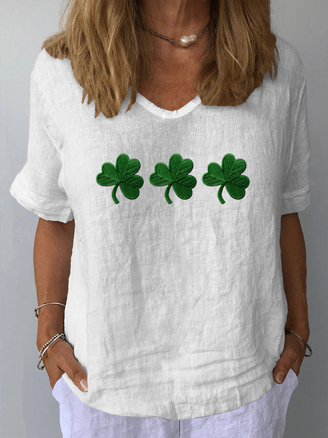 Women's St. Patrick's Day Casual V-Neck Cotton And Linen Top