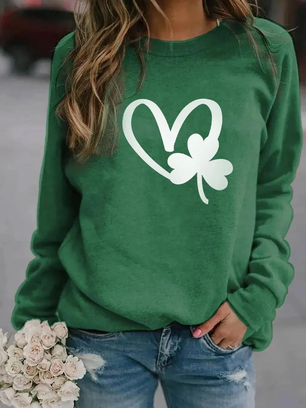 Women's St. Patrick's Day Clover Crew Neck Casual Sweatshirt