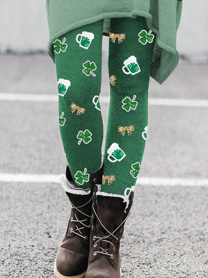Women's St. Patrick's Day Glitter LUCKY SHAMROCK Print Leggings