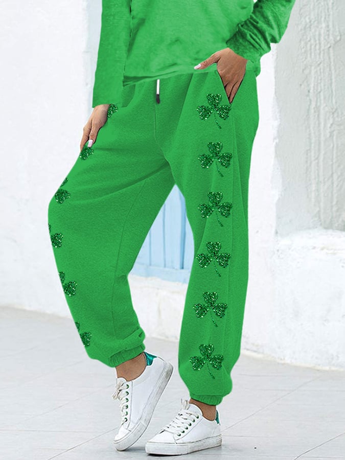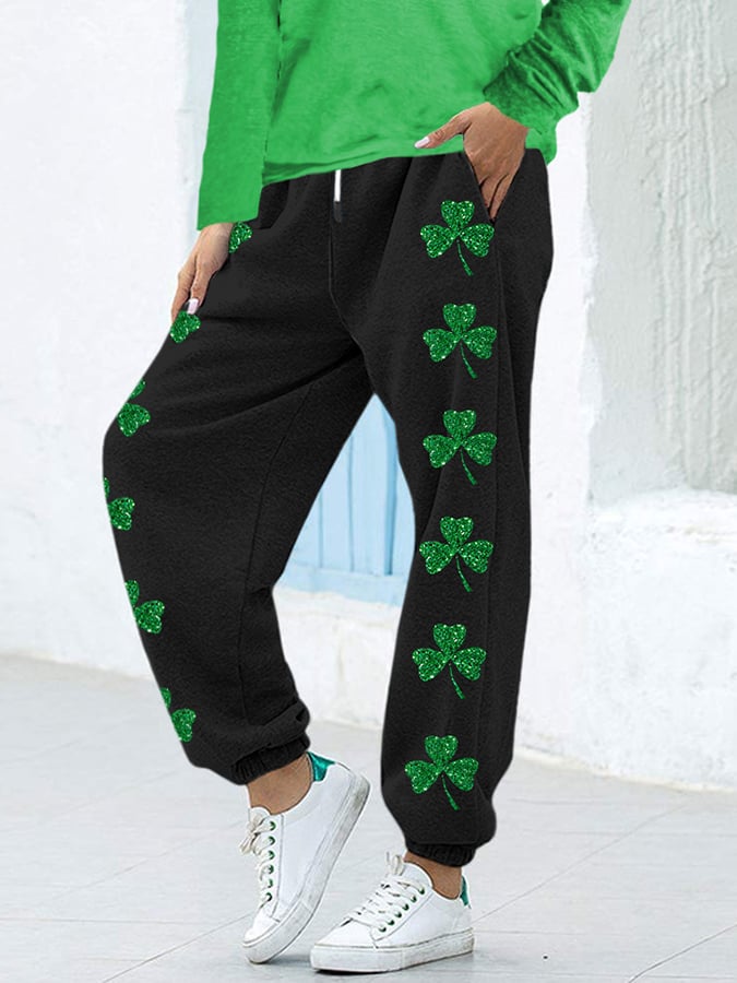 Women's St. Patrick's Day Glitter Shamrock Print Casual Pants