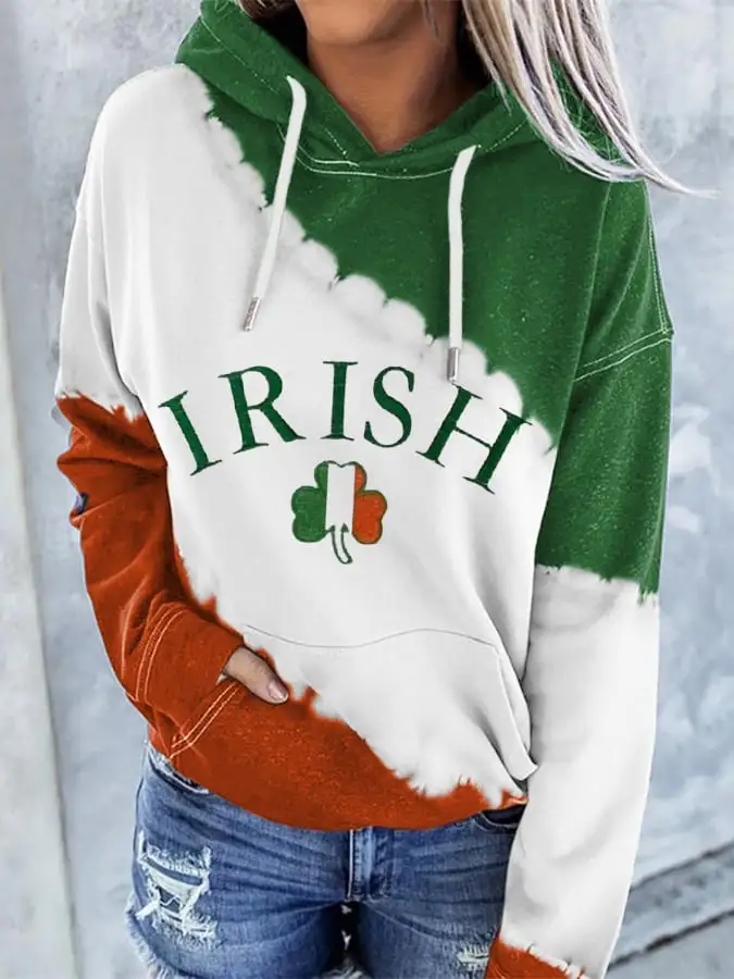 Women's St. Patrick's Day Irish Clover Printed Hooded Sweatshirt
