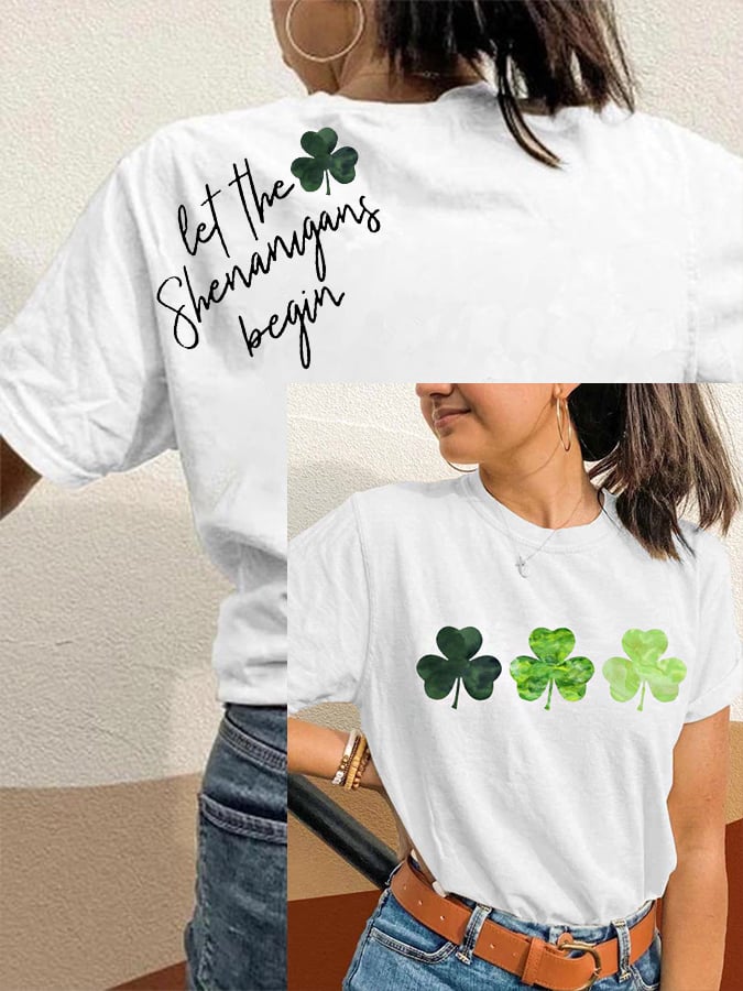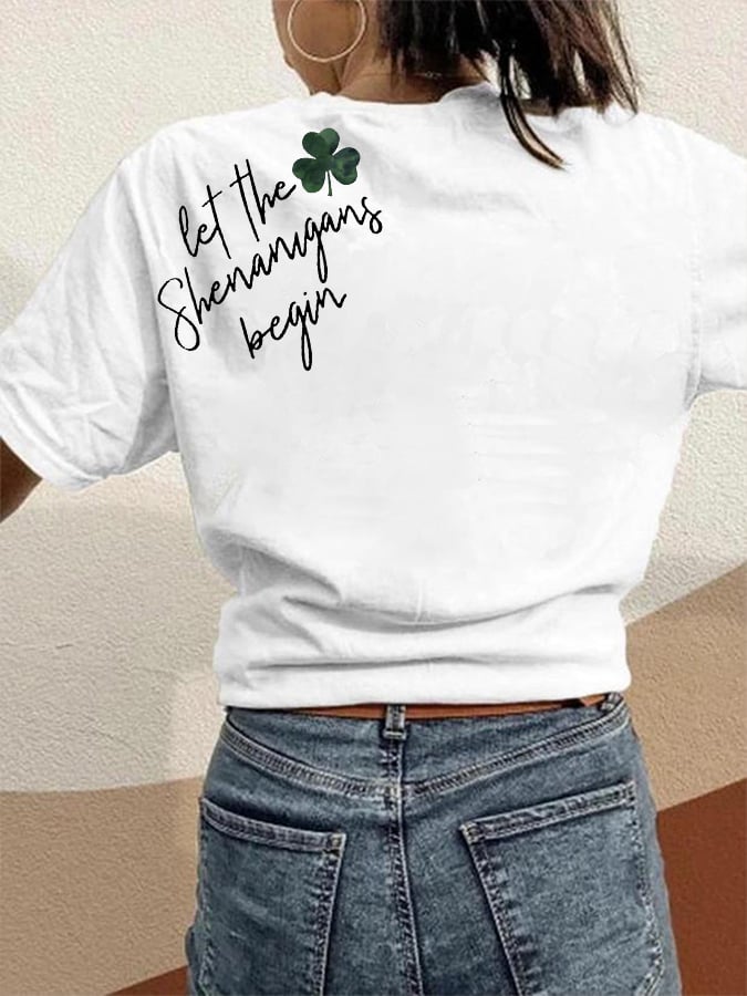Women's St. Patrick's Day Let The Shenanigans Begin Lucky Shamrock Casual Tee
