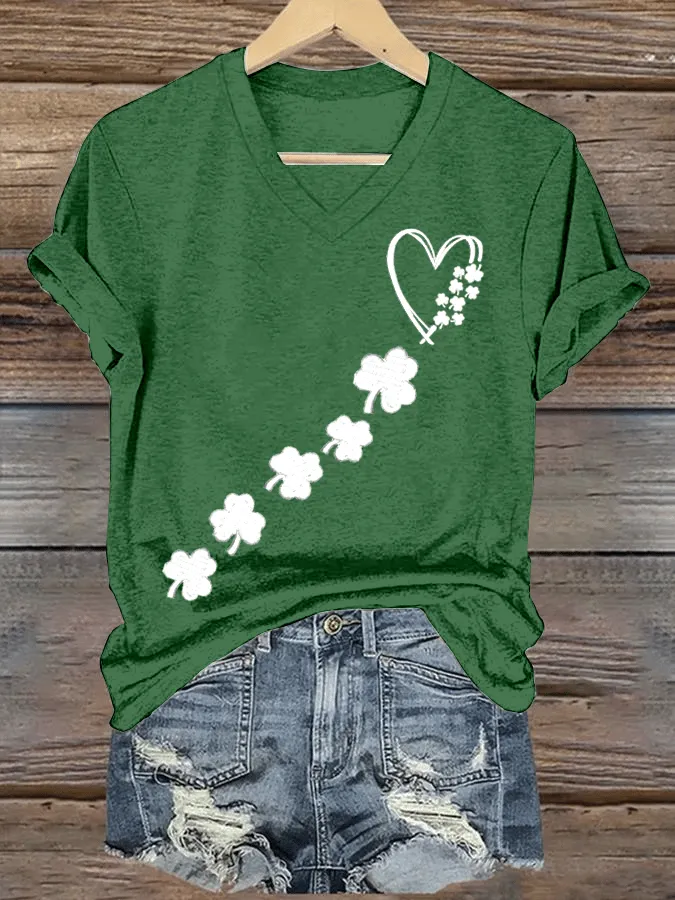 Women's St. Patrick's Day Printed V-Neck T-Shirt