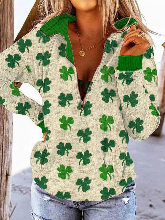 Women's St. Patrick's Day Printed Zip Sweatshirt