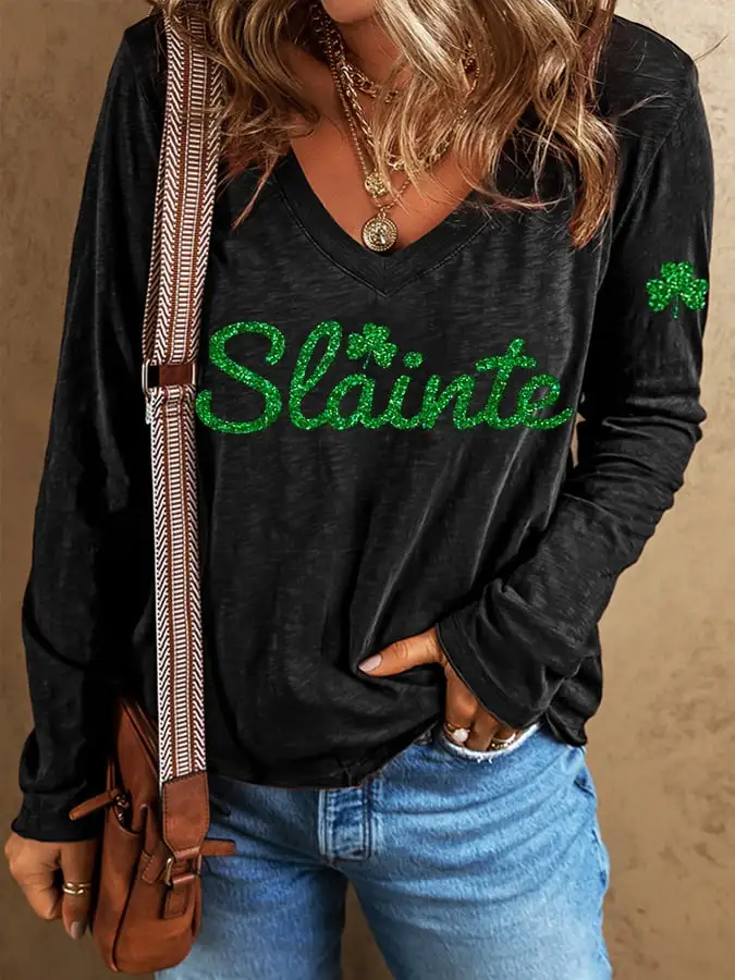 Women's St. Patrick's Day Sequins Slainte Print T-Shirt