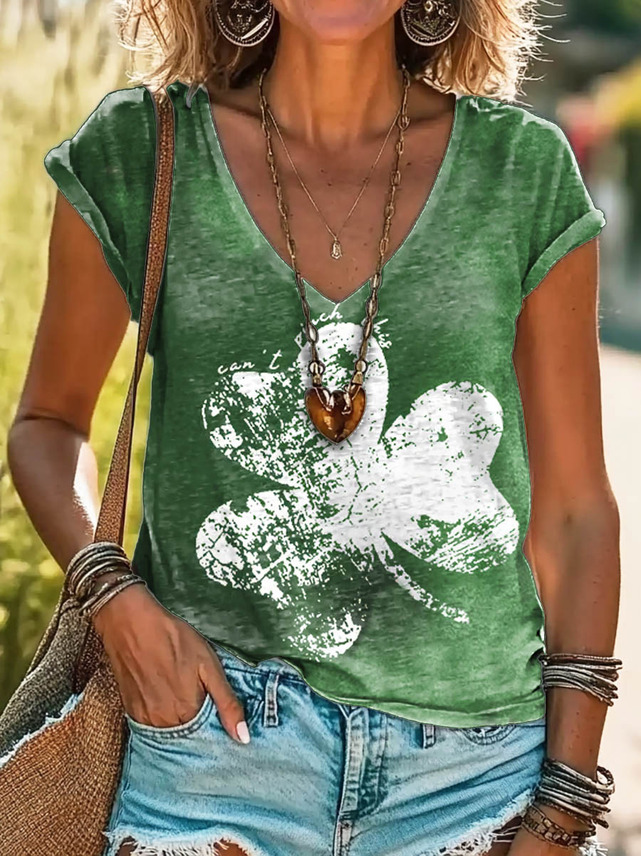 Women's St. Patrick's Day Shamrock Art Print V-neck T-Shirt