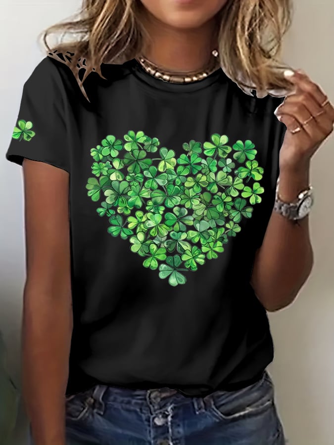 Women'S St Patrick's Day Shamrock Heart Print T-Shirt