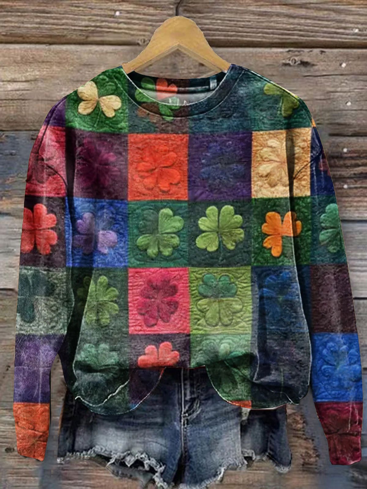 Women's St. Patrick's Day Shamrock Patterned Sweatshirt
