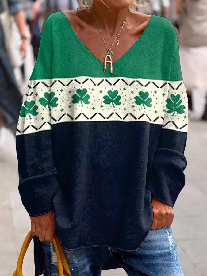 Women's St. Patrick's Day Shamrock V-Neck Long Sleeve Top