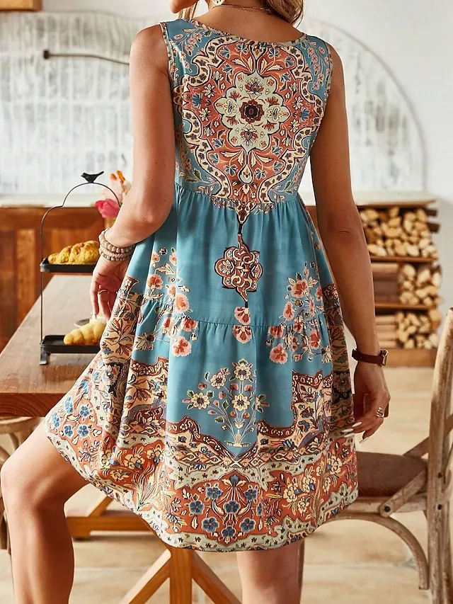 Women's Sundress Tank Dress Floral Ruched Print U Neck Midi Dress