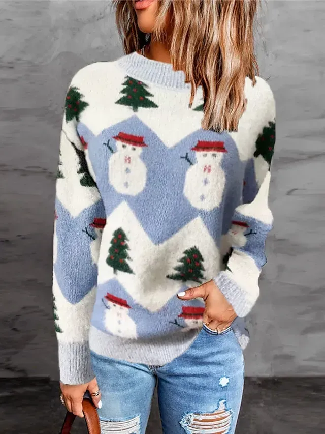 Women's Ugly Christmas Sweater Pullover Sweater Jumper Crew Neck Ribbed Knit Polyester Knitted Fall Winter Tunic Outdoor Christmas New Year Stylish Casual Soft Long Sleeve Snowman Xmas Tree Pink