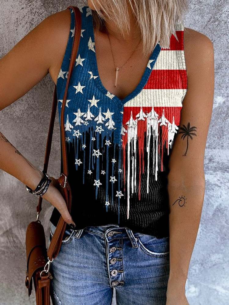White American Flag Print Strappy V Neck Tank Top
