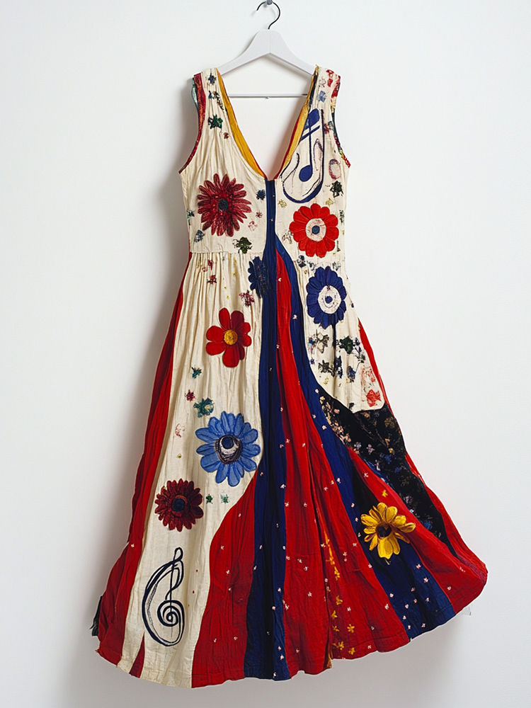 Women's Vintage Floral And Musical Notes Art Sleeveless Dress
